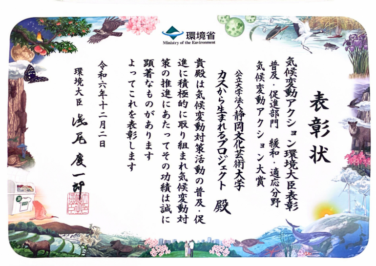 「りとるあーす」による「カスから生まれるプロジェクト」の商品開発と販売の取り組みが高く評価され、令和6年度気候変動アクション環境大臣表彰の普及・促進部門 緩和・適応分野で「気候変動アクション大賞」を受賞されました!