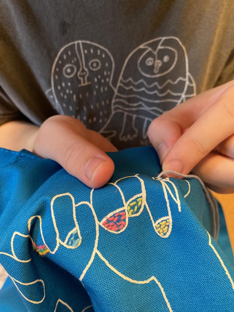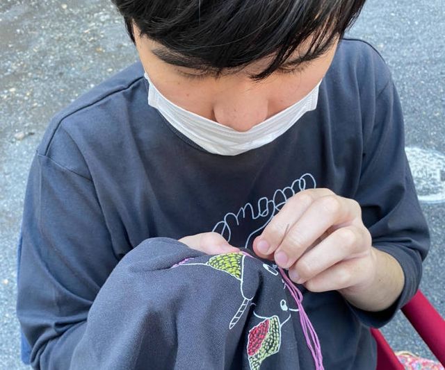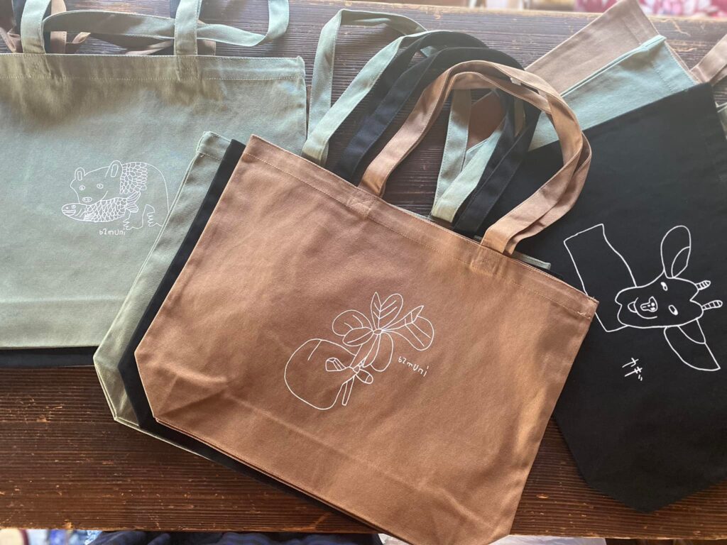 そのイラストが描かれた、Tシャツやトートバッグなどを販売します。イベントでは、あやたさんがイラストにちくちくと刺繡をしながらお出迎えくださいます!