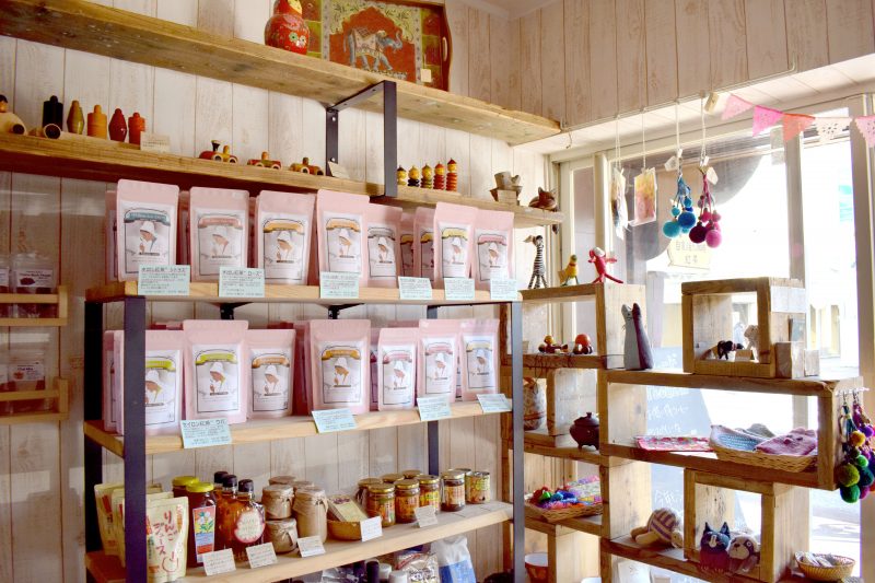 コーヒーは自家焙煎、紅茶・スパイスはスリランカの茶園から直輸入。また、雑貨もペルーやインドのフェアトレード生産者と協力して、オリジナル商品を作っています。