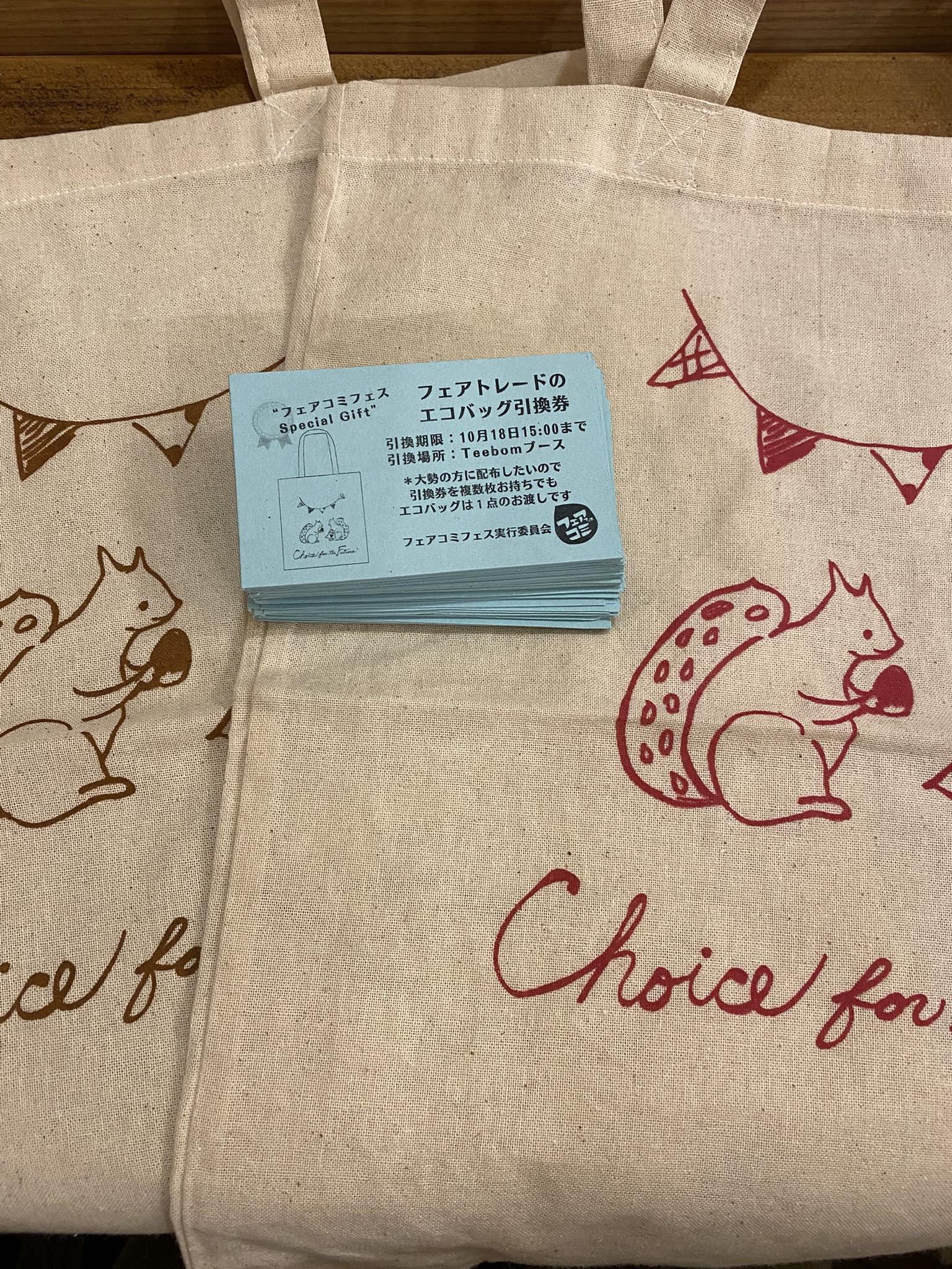今年のフェアコミフェスでは、会場でお買い物をしてくださったお客様に、エコバッグをプレゼントさせていただきます!